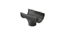 Труба необходимого размера объединяет два колена и формирует нужный вынос от карниза до фасада дома для дальнейшего монтажа водосточной трубы. Нижнее колено крепится к фасаду хомутом. Между собой элементы собираются без какого-либо крепежа.