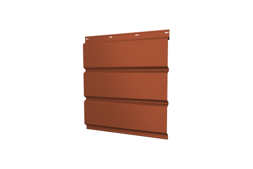 Описание товара: "Софит металлический без перфорации 0,5 Satin Мatt с пленкой RAL 8004 терракота"