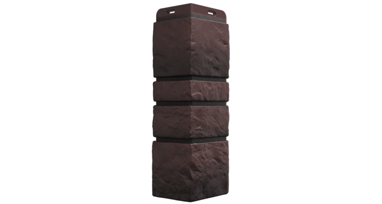 Декоративный элемент для отделки внешних углов. Применяется в составе комплекта материалов для облицовки зданий фасадными панелями Docke Premium коллекции BURG, цвет темный. По дизайну в точности повторяет цветовую схему, рельеф и текстуру поверхности панелей, в составе комплекта отделочных материалов формирует законченное решение по обшивке фасада в едином стиле.